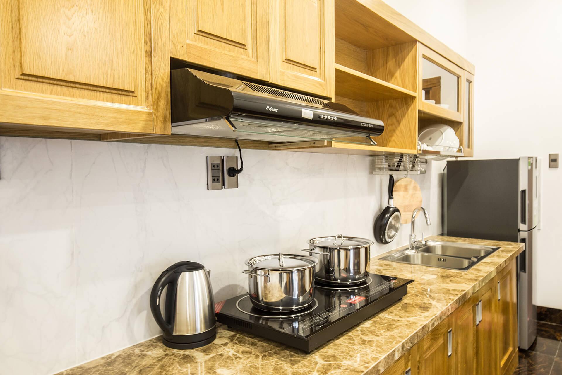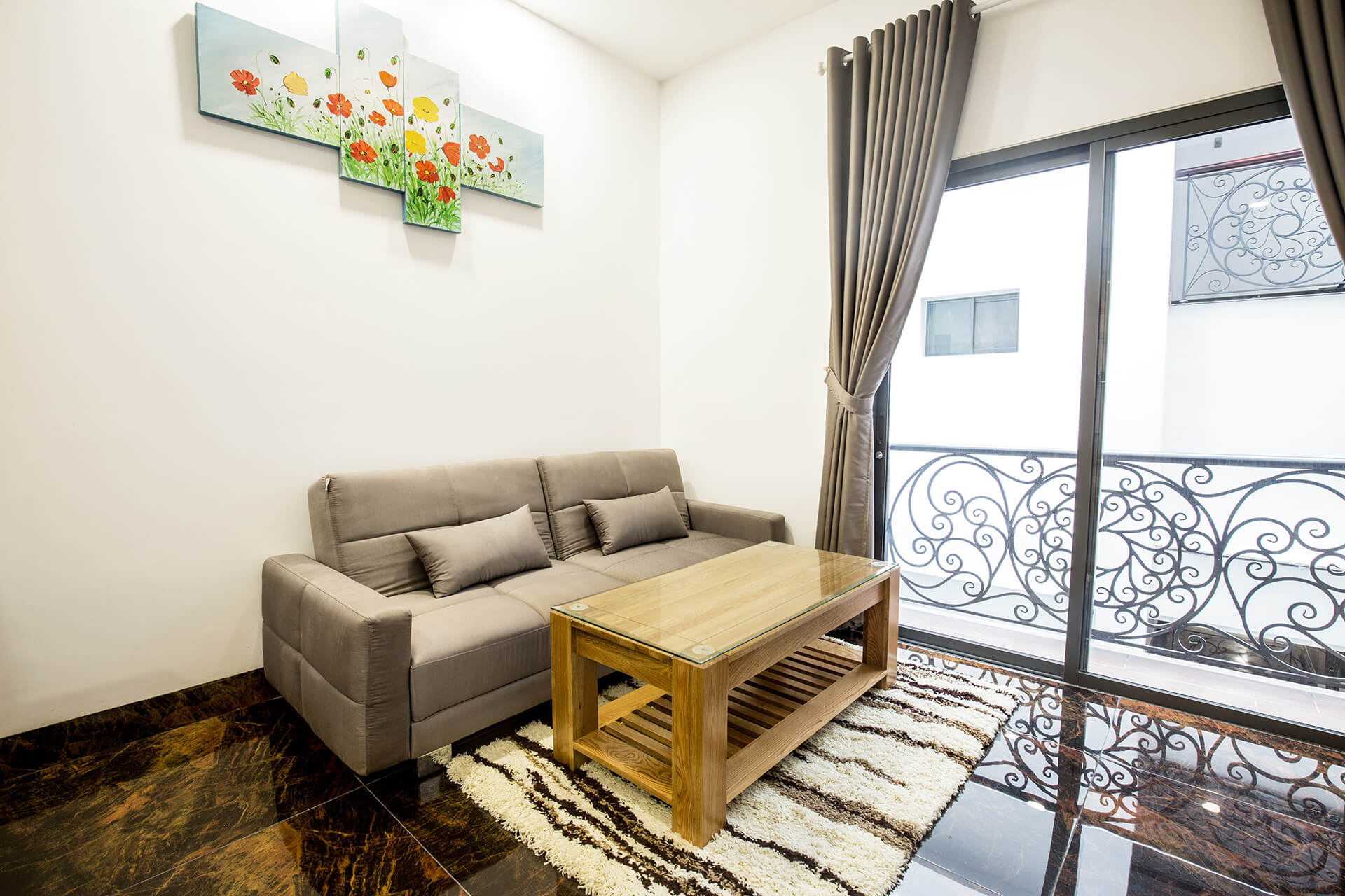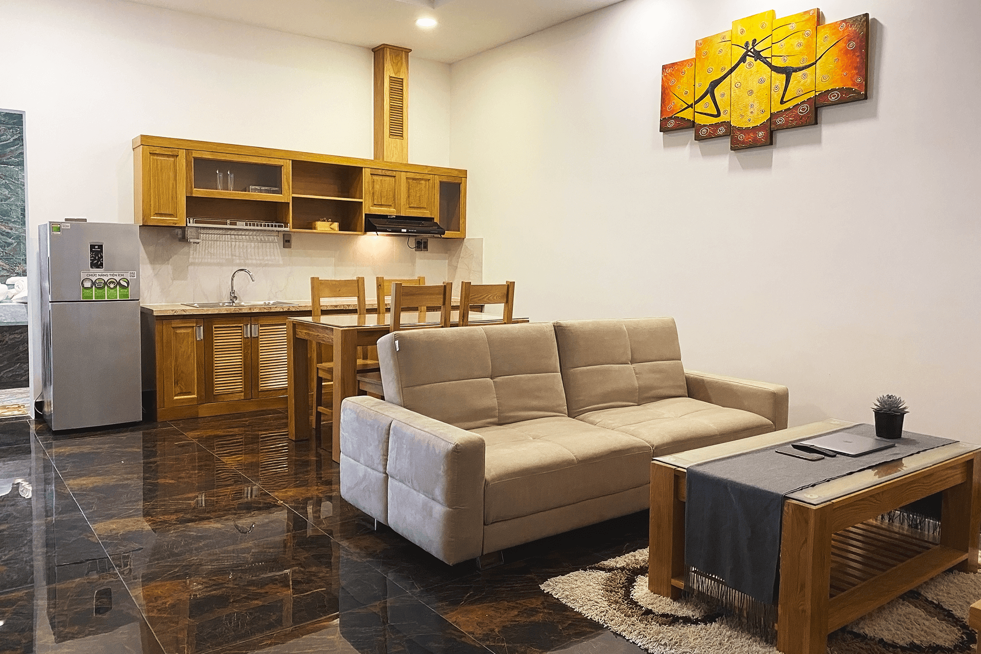 With a large living space, the apartment is suitable for a small family or a group of friends, wants to have a common living space but still ensure privacy for each individual.